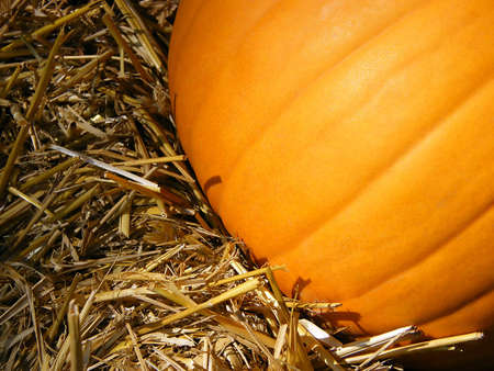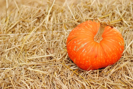 Orange pumpkin on the straw