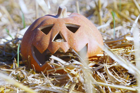 Pumpkin halloween on dry grass.
