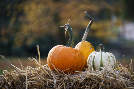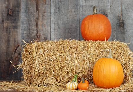 Fall Scene with pumpkins and straw