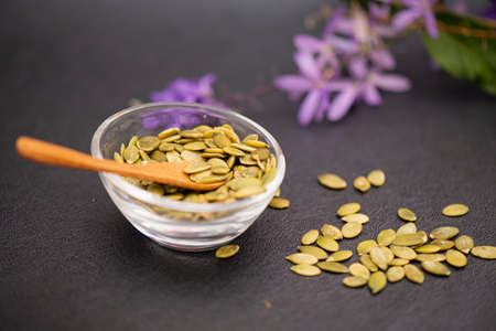 healthy pumpkin seeds for baking and eating. Delicious vegetarian food. Many vitamins and substances.