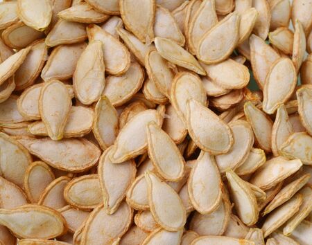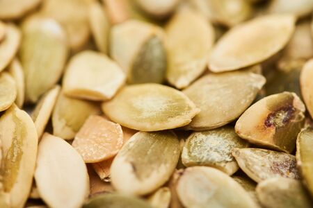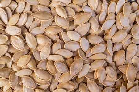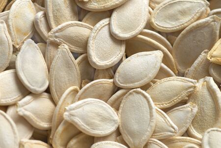 Close-up of pumpkin seeds as background. Macro