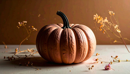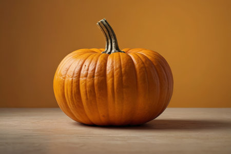 Bright orange pumpkin resting on a neutral background showcasing its textured surface during autumn harvest season