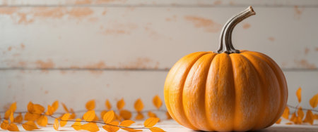 AI Generated. Autumn Pumpkin Whitewashed Wooden Background
