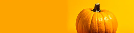 Pumpkin on yellow background, space for text