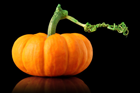 Single orange pumpkin isolated on black