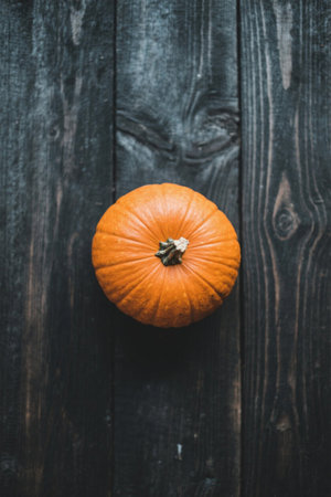 Autumn pumpkin and fall decor on a rustic wood background with copy space