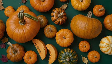 Thanksgiving and Harvest Festival. variety of pumpkins, their vibrant colors and textures ranging from smooth orange to warty green, representing the diversity of nature's gifts.