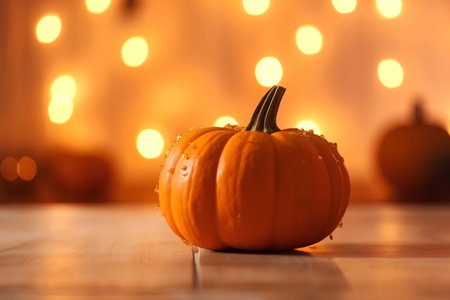 pumpkin on the wooden table with bokeh lights background