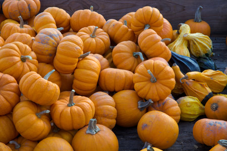 mini pumpkins heap halloween or thanksgiving orange food agriculture market