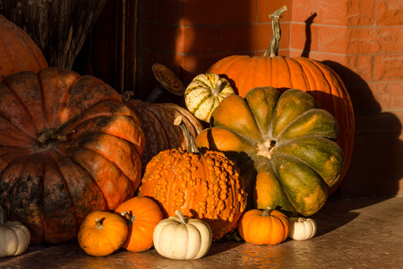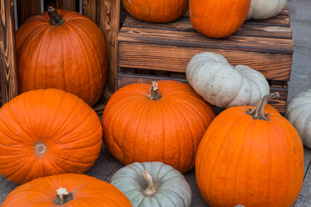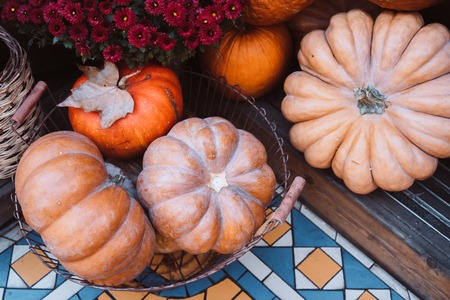 pumpkins in honor of the celebration of autumn and Halloween. festival of vegetables