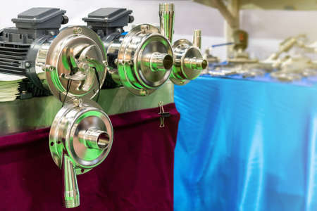 Close up propeller or vane of high pressure pump for water solvent chemical liquid or oil transfer in industrial process