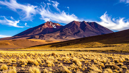 Fantastic Scenic landscapes of Northern Chile, Atacama desert. Beautiful inspiring natural landscapes. Kalgaspores in high mountains.