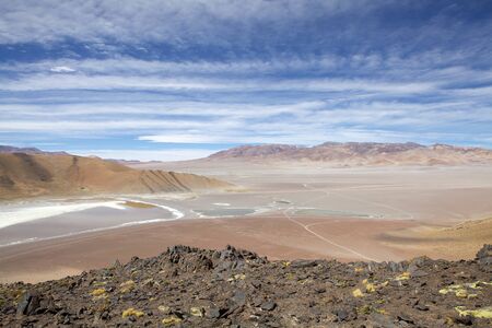 Scenic viewpoint at the Puna de Atacama, Argentina. Puna de Atacama is an arid high plateau in the Andes of northern Chile and Argentina. In Argentina Puna's territory is extended in the provinces of Salta, Jujuy and Catamarca