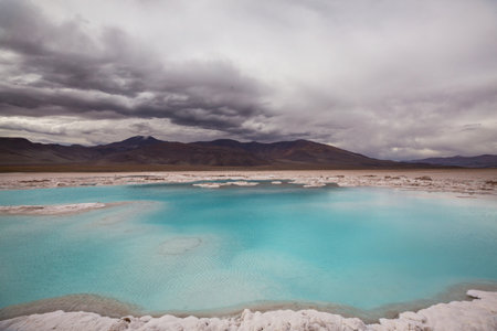 Fantastic Scenic landscapes of Northern Argentina. Beautiful inspiring natural landscapes. Laguna Verde in Salar Antofalla.