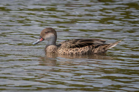 White-cheeked Pintail Anas bahamensis swims quietly in a small pond