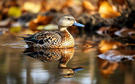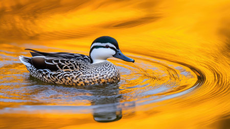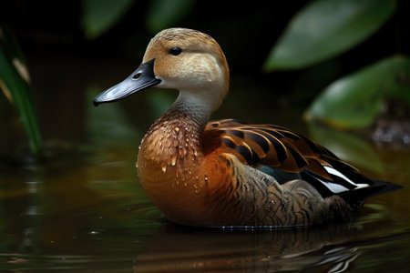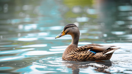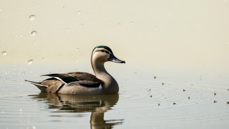 AI Generated. A duck swimming in a pond with water droplets