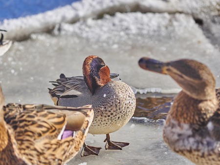 male teal on the lake in winter
