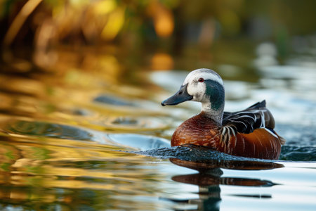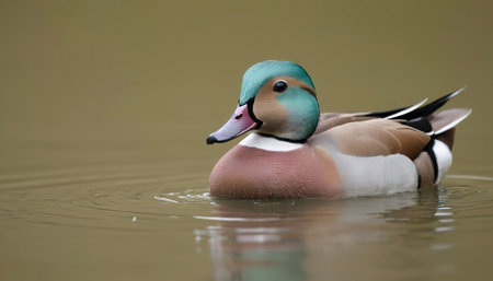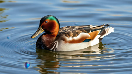 Colorful duck swimming gracefully through calm waters in a tranquil park setting