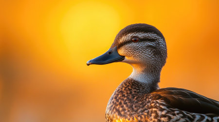 Close-up of a mallard duck swimming on calm water with its reflection and soft ambient light, symbolizing nature, wildlife, and tranquility.