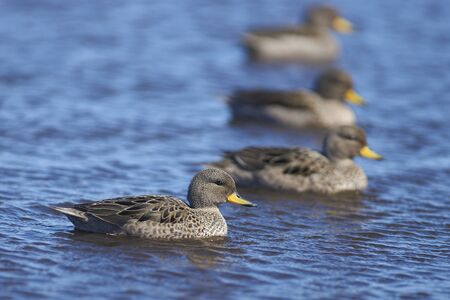 Group of Crested Duck (Lophonetta specularioides specularioides) on Bleaker Island in the Falkland Islands.