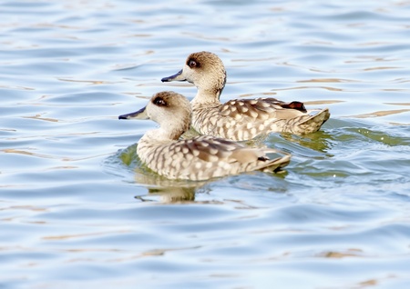 Marbled Teal (Marmaronetta angustirostris) on a pond at Slimbridge in Gloucestershire, United Kingdom.