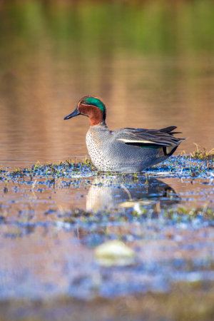marbled teal in the wild in the first light of day
