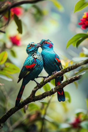 A close up of a bird with red and black feathers, AI