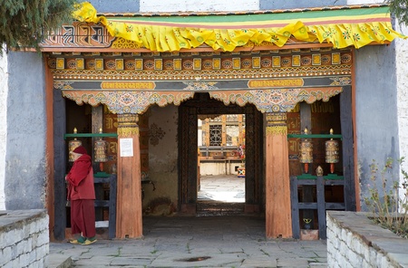 Entrance at the Jampey Lhakhang temple, Chhoekhor, Bhutan. It is one of the oldest temple in Bhutan. It is said to date back to 7th century