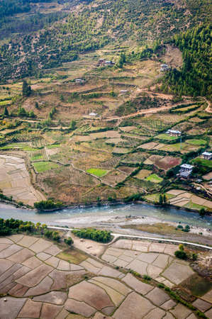 Overview of rice terraces in Punakha District, Bunakha Valley, Bhutan