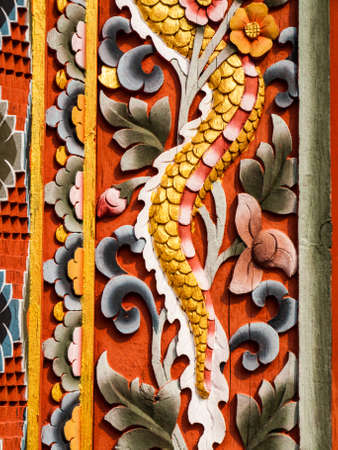 Ornate facade with window of the Punakha dzong monastery in Punakha, Bhutan, Asia