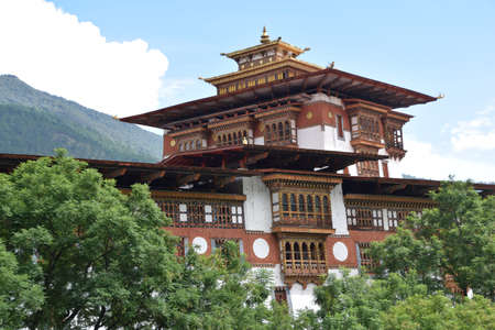 Entrance of the Trashi Chhoe Dzong monastery in Thimphu, Bhutan, Asia