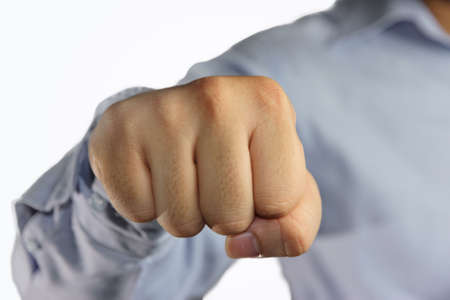 Aggressive man showing his fist. Domestic or gender violence concept.