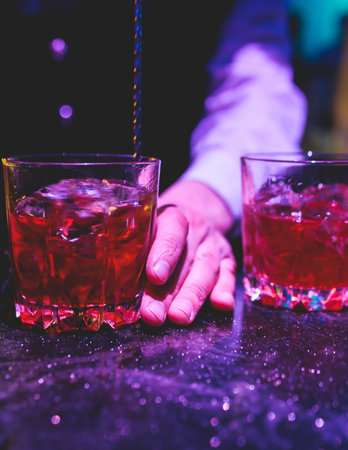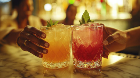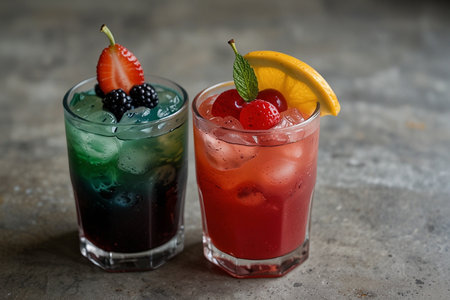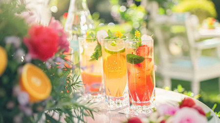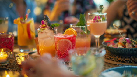 Colorful beverages on a table with a stylish and sophisticated atmosphere