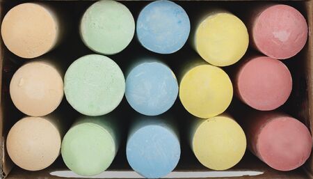 multicolored chalks in a box close up
