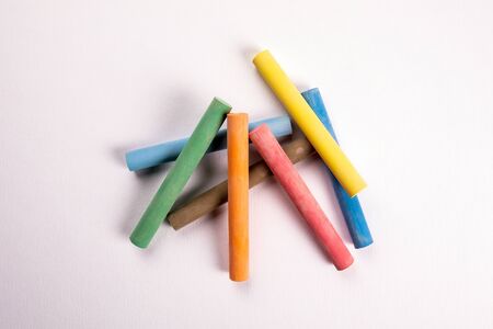 Close up of multicolor chalk on white. Creativity, learning and growth, abstract background