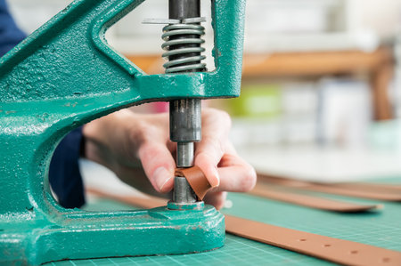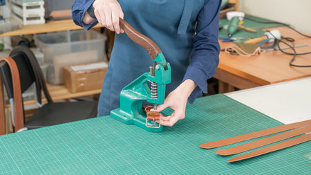 Leather cutter for small business industrial. Handmade leather cutting material and instrument for small manufacturing