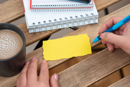 Close up of women hand writing on notepad.