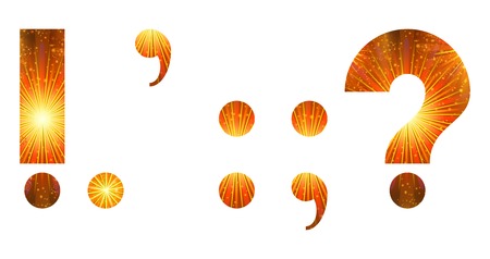 Set of mathematical and punctuation signs exclamation point, period, comma, colon, semicolon, question mark, stylized gold and orange holiday firework with stars and flares, elements for web design. Eps10, contains transparencies. Vector