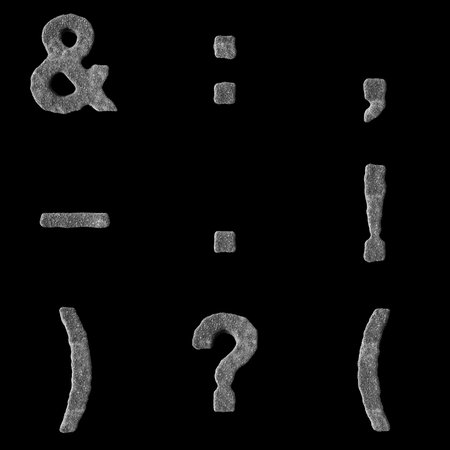 3D Render Set of Stone Alphabet - Font including Letters, Numbers and Punctuation Marks isolated on black background, including path embedded on file for easier decoupage.