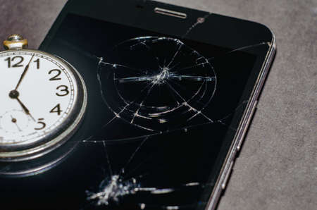Modern smart phone with broken screen.