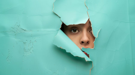 Female face through the hole in paper