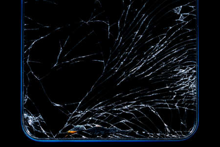 closeup cracked screen on broken smart phone.