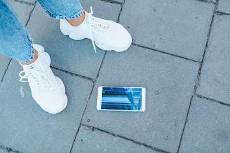 drop down mobile phone cracked screen. accident. repair service