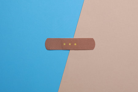 Medical Adhesive bandage plaster on blue beige background