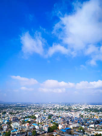 Beautiful view of the city. House, mountains on the horizon. Panorama city Udaipur, India
