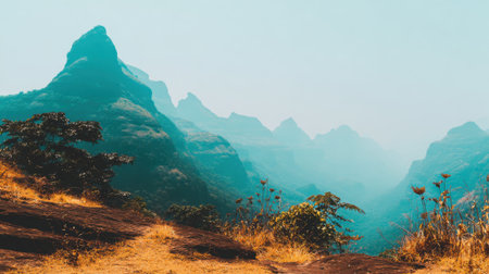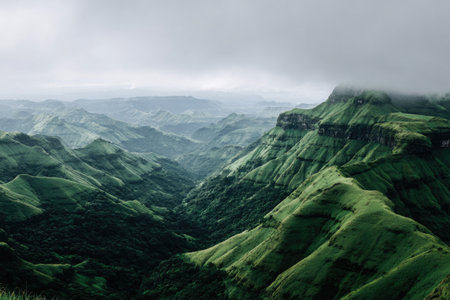 Blue sky with green mountains in the shayadri ranges of western ghats india