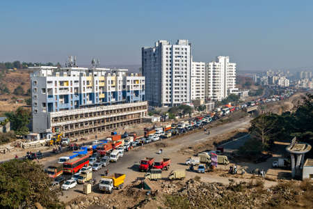 Due to some accident, Long traffic jam on Mumbai - Bangalore bypass highway in Pune, Maharashtra, India.
