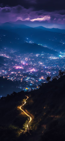 Generative AI : Beautiful Tonglu a small hill station in Darjeeling at night time with sky and stars
