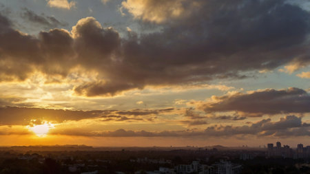 Sunset behind tall buildings in a rapidly growing city-Pune, Maharashtra, India.