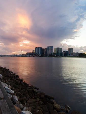 Sunset view of Wentworth Point building skyline, Sydney, Australia.